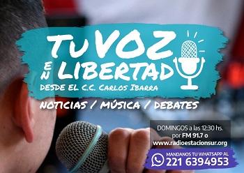 Adolescentes de los Centros de Responsabilidad Penal Juvenil “Carlos Pellegrini” y “Carlos Ibarra” realizan el programa de radio “Tu voz en libertad”, que se emite sábados y domingos por Radio Estación Sur (FM 91.7) de La Plata, en el marco de uno de los talleres que acompañan a la educación formal de los chicos.