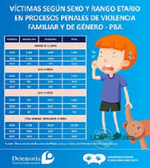 Según los últimos datos consignados por el Registro de Violencia Familiar y/o de Género del Ministerio Público bonaerense (ReViFaG), en un año se constató un número de víctimas menores de 11 años 74% superior al del año 2018, registrándose el mayor aumento en los casos de niñas (+113%).