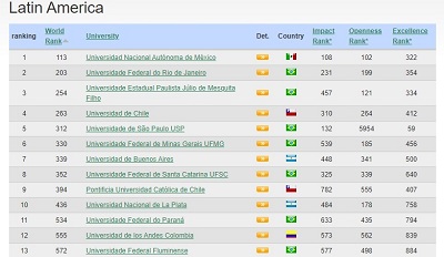 El relevamiento completo puede consultarse en http://www.webometrics.info.