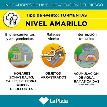 También se recomienda estar atentos a los canales oficiales de información: las cuentas de Facebook y Twitter de la Municipalidad de La Plata; la web oficial de la comuna laplata.gob.ar; ‘Defensa Civil MLP’ en Twitter y Facebook; y ‘Clima MLP’ en Twitter. Del mismo modo, se recuerda que en casos de emergencias los vecinos podrán comunicarse al 103 de Protección Civil y al 911 de la Policía; mientras que, para realizar reclamos o pedidos, podrán hacerlo a la línea de atención del 147.
