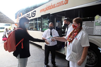 En este sentido, la Secretaría de Transporte de la Comuna dispuso este miércoles un amplio operativo de control en la Terminal de Ómnibus de la ciudad, donde supervisó que los pasajeros mantengan la distancia social obligatoria, usen correctamente el tapaboca-nariz y se realicen los controles de temperatura correspondientes.