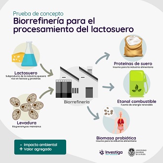 Se trata del etanol combustible, la biomasa probiótica y las proteínas de suero, todos productos que se pueden obtener del lactosuero. Este significativo avance posibilita no sólo un aprovechamiento integral de los subproductos derivados de la industria quesera, sino que además permite mitigar los efectos contaminantes de este tipo de residuos y generar una fuente energética renovable con un efecto ambiental positivo.