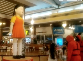 “En los últimos días hemos recibido pedidos de ayuda ante la ´propuesta` de un shopping de Avellaneda que consiste en recrear uno de los juegos de la serie. En el patio de comidas del establecimiento instalaron una muñeca gigante (idéntica a la del primer juego de la serie) alrededor de la cual chiquitos de 6, 7 años corren (semáforo rojo, semáforo verde o uno dos tres cigarrillos cuarentaytres) y deben detenerse cuando la muñeca lo dice. El que no lo hace sufre el disparo de soldados (recrean a los de la serie) ubicados alrededor del círculo”, agrega.