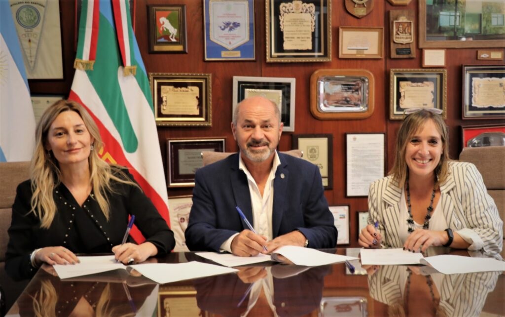 La vicepresidenta del Área Institucional de la Universidad Nacional de La Plata, Andrea Varela, acompañada por la decana de la facultad de Humanidades y Ciencias de la Educación, Ana Julia Ramírez, firmaron un convenio con el intendente de la localidad de Ensenada, Mario Secco.