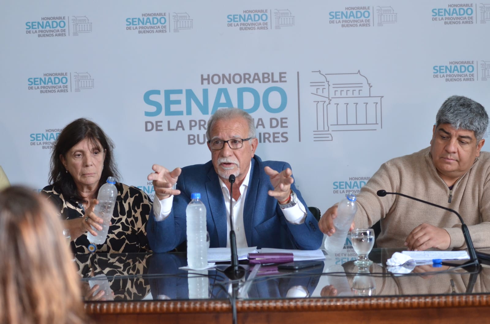 Durante la conferencia, el legislador estuvo acompañado por el secretario general de la Asociación Sindical de Motociclistas Mensajeros y servicios, Marcelo Pariente, el secretario general de la Confederación General del Trabajo (CGT), Pablo Moyano, y los jefes de bloque en ambas cámaras del oficialismo, Teresa García y Cesar Valicenti,.