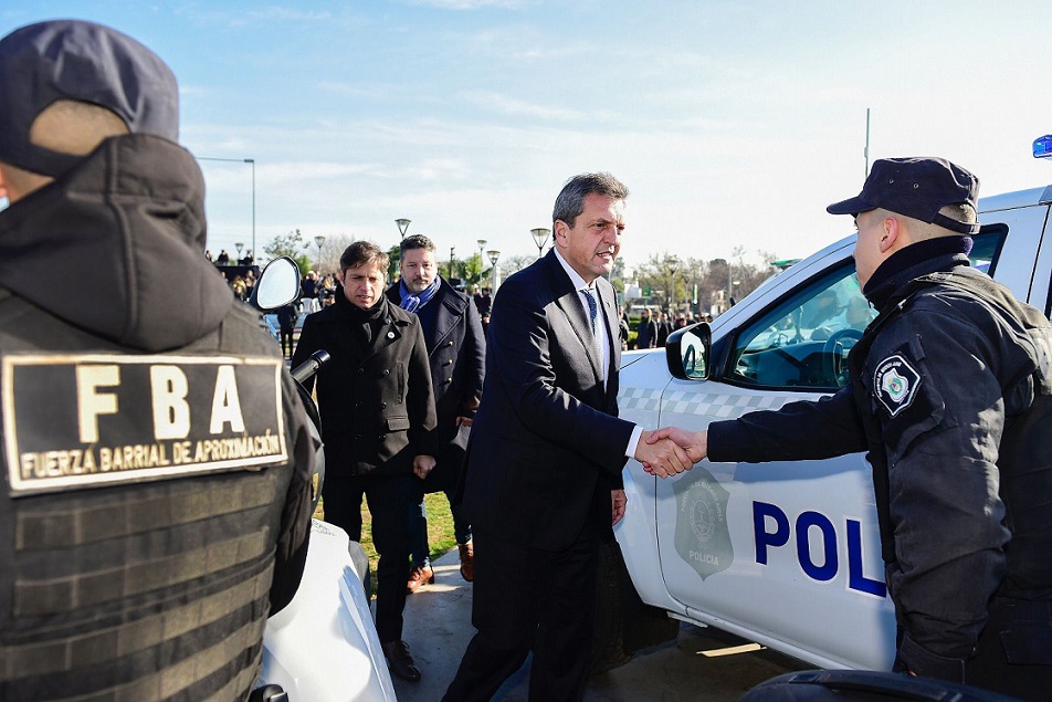 “Salud y seguridad son todo, porque en definitiva son la vida. Cuando no tenemos salud, cuando no caminamos seguros, cuando tenemos miedo, cuando estamos en riesgo, no tenemos nada, no hay plata, no hay trabajo, no hay casa que reemplace el vivir con miedo. Cada peso que invertimos para tener una policía equiparada con las Fuerzas Federales de Seguridad Nacional, cada peso que invertimos en tecnología con cámaras, en equipamiento con móviles, en logística de inteligencia y de prevención, en realidad es invertir un peso en cuidar la vida de nuestro pueblo, de nuestra gente” explico Massa.