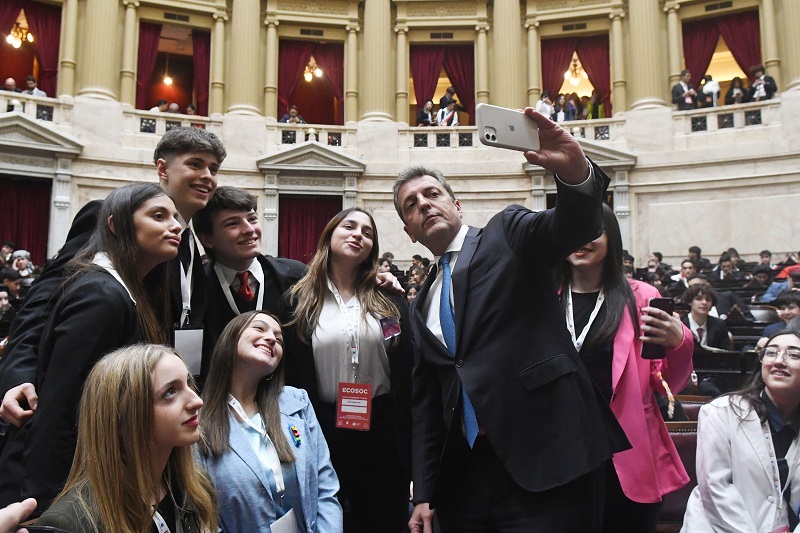 Al respecto, Massa se dirigió a los jóvenes a quienes felicitó y agradeció la participación en este foro y subrayó que “ustedes tienen la responsabilidad del mañana de la Argentina, así como sentimos orgullo cuando cantamos nuestro himno, así como sentimos pasión cuando vemos nuestra bandera alrededor de la Selección, también tenemos que sentir orgullo y pasión por aquellas cosas que tenemos los argentinos que nos sirven para enfrentar el mundo que viene”.