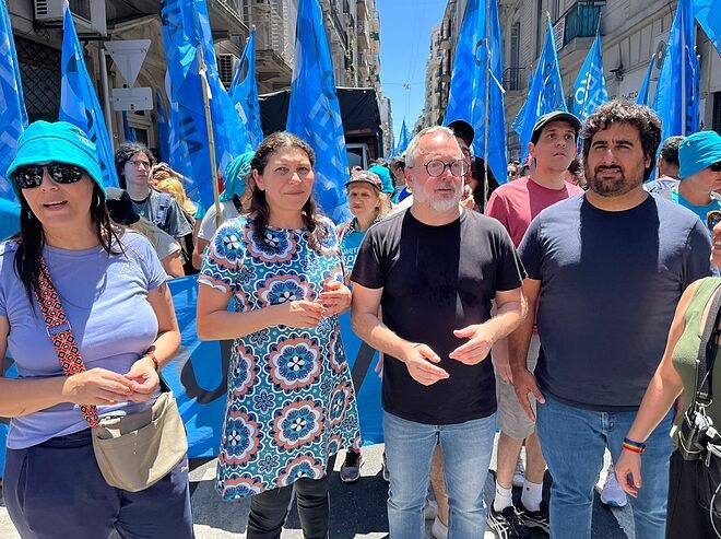 Nuevo Encuentro, fuerza que lidera Martín Sabbatella, presente en la Plaza de los Dos Congresos, en la jornada de paro y movilización que encabezan las centrales obreras, junto a organizaciones sociales y políticas contra las medidas del gobierno de Milei.