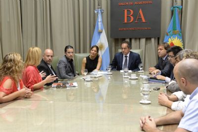 El gobernador, Daniel Scioli junto a su jefe de gabinete, Alberto Pérez recibió hoy al concejal por Merlo, Gustavo Menéndez, quien abandono el Frente Renovador desilusionado por la alianza con el intendente Raúl Othacehé. La reunión tuvo como eje defender la legitimidad de sus votos trabajando en la construcción de una agenda de gestión que beneficie a los habitantes de Merlo. Luego del encuentro, el concejal, acompañado por su bloque y consejeros escolares, mantuvo reuniones con la Directora General de Cultura y Educación, Nora De Lucía; el ministro de Salud, Alejandro Collia; de Infraestructura, Alejandro Arlía y de Seguridad, Alejandro Granados.