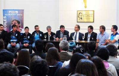 El encuentro desarrollado en el Anexo de la Cámara Alta fue impulsado por el Senador bonaerense Juan Curuchet y contó con la presencia del entrenador de seleccionado de Hockey, Carlos Retegui y representantes del deporte argentino. El Presidente del Senado Bonaerense encabezó junto al Gobernador Daniel Scioli una charla de motivación e incentivo al deporte en el Anexo de la Cámara Alta. “Que estos campeones tengan la disposición de andar agitando la conciencia en materia de deporte por todo el país nos obliga a llevar adelante las políticas de inclusión”, sostuvo Mariotto en referencia al trabajo desempeñado por los representantes del deporte argentino que visitaron la legislatura. “En el trabajo en equipo está el secreto, dejar el ego y poder sumar al conjunto. Creo que ahí está la principal enseñanza del deporte”, explicó el Vicegobernador, quien volvió a insistir en la necesidad de profundizar medidas inclusivas. “Debemos tener una mirada de gestión interdisciplinaria, para que podamos trabajar mancomunadamente, creando escenarios para nuestros chicos y veteranos”, aseveró el Titular de la Cámara Alta. Acompañado por el Gobernador Daniel Scioli y el Senador Juan Curuchet, quien impulsó esta actividad desde la Comisión de Deportes, Mariotto aseguró que “si trabajamos en la formación y si ponemos el deporte en los lugares más vulnerables vamos a lograr resultados óptimos en materias de inclusión”. En esa línea, el Vicegobernador resaltó la importancia de que “los patios de las escuelas estén abiertos los sábados y domingos para que los chicos puedan acceder a actividades recreativas” y propuso ir “a la esquina a buscar a los pibes e incorporarlos al club del barrio”. Por su parte, el Gobernador Daniel Scioli felicitó al Senado por el trabajo que viene desarrollando en materia de deporte y a Gabriel Mariotto “por abrir la casa de la democracia a los ciudadanos y llenarla de contenido”. “Los clubes de barrio son escuelas de vida y con el plan de apoyo a estas instituciones apoyamos el trabajo que se desarrolla allí. Creemos en la fuerza social y económica del deporte”, aseveró el titular del ejecutivo provincial, quién destacó además el rol que cumplen la Cultura y la Educación como promotores de la inclusión. El Senador bonaerense y Presidente de la comisión de Deportes, Juan Curuchet, resaltó la vocación de Mariotto por abrir las puertas del Senado a la comunidad y convocar a referentes del deporte argentino. “Nosotros tenemos que mostrar las cosas maravillosas que han logrado y debemos escucharlos, porque nos van a dar herramientas importantes para crecer”, aseguró el ex campeón olímpico de ciclismo. Carlos “Chapa” Retegui, entrenador de los seleccionados de Hockey nacionales sostuvo que “el deporte es para todos los Argentinos y es un derecho inscripto en la Constitución” y aseguró que “es importante trabajar con los que más lo necesitan, porque el deporte es un derecho inscripto en la Constitución”. La actividad desarrollada en el Salón Eva Perón responde a la lógica instrumentada desde el arribo del Vicegobernador Gabriel Mariotto, quien propuso abrir las puertas del Senado a la sociedad. Formaron parte de este encuentro el Secretario de Deportes provincial, Alejandro Rodriguez; el medallista de oro en los Juegos Olímpicos de Londres 2012, Sebastián Crismanich; el ciclista campeón en los Juegos de Beijing 2008, Walter Pérez (conquistó el primer lugar junto a Juan Curuchet); el velista Julio Alsogaray; el especialista en anillas, Federico Molinari y el taekwondista Martín Sío. Además, estuvieron presentes los Senadores Provinciales, Cristina Fioramonti (Jefa de bloque del FPV – PJ), Marcelo Carignani, Emilio López Muntaner, Patricio García, Luciano Martini, Silvia Pérez y Gervasio Bozzano; y el Secretario Administrativo de la Cámara Alta, Néstor Pan.
