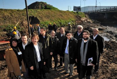 El Jefe de Gabinete de la Provincia de Buenos Aires, Alberto Pérez, junto al ministro de Infraestructura, Alejandro Arlía, el Jefe de Asesores del ministerio de Economía de la Nación, Ariel Luthier, y el intendente municipal, Pablo Bruera, recorrió el Arroyo del Gato de La Plata en el comienzo de la etapa de hormigonado que forma parte de las obras puestas en marcha para evitar desbordes e inundaciones en el cauce. “Este trabajo sintetiza una forma de gobernar: junto a la Nación que está aportando los fondos, con la dirección de las obras a cargo del gobierno de Daniel Scioli y con toda la colaboración del municipio para dar respuesta a la demanda de los vecinos de la Región Capital. Es mucho el empeño que se está poniendo desde los tres niveles del Estado para que estas obras se concluyan en tiempo y forma”, destacó Pérez. Las obras permitirán duplicar la capacidad de escurrimiento y encauzar la evacuación a lo largo de todo el cauce del Arroyo del Gato para evitar desbordes e inundaciones. Esta nueva etapa es el inicio de una obra que demandará un total de unos 60.000 m3 de cemento para revestir parte del canal. "Esta obra significa para la Provincia una inversión de 1973 millones de pesos, por lo que agradecemos al gobierno nacional que la financiará y que aceleró los tiempos que permitieron iniciar hoy una etapa clave como es la del hormigonado", destacó Arlía, y agregó: “Aquí tenemos una muestra más de que, como dice el gobernador Scioli, con el trabajo conjunto entre Nación, Provincia y Municipio nos fortalecemos y los objetivos, por más dificultosos que parezcan, se pueden lograr". Finalmente, Jefe de Asesores del ministerio de Economía de la Nación, Ariel Luthier, señaló que “con alegría vemos como las obras avanzan y se cumple con el sueño de los vecinos. Quiero transmitir el compromiso de que el Gobierno Nacional va a seguir apoyando esta obra, que implica un esfuerzo muy grande en términos económicos que vale la pena hacer para mejorar la calidad de vida de miles de personas que viven en esta zona”. Del recorrido por el arroyo, participaron operarios de la obra encabezados por el director provincial de Hidráulica, Mario Gschaider; funcionarios provinciales; el concejal platense Gabriel Bruera; la diputada provincial por la Octava Sección, Valeria Amendolara y representantes de la Organización “2 de abril”.