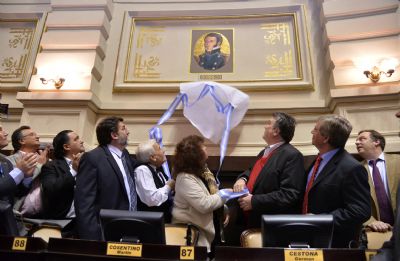 Con el consenso de todos los bloques políticos, la Cámara de Diputados de la Provincia de Buenos Aires realizó esta tarde el acto de entronización del retrato de Manuel Dorrego, como parte de una actividad encabezada por su presidente, Horacio González. El titular del Cuerpo legislativo argumentó el homenaje con conceptos históricos y políticos poniendo en valor la figura del ex gobernador bonaerense, que asumió su mandato el 13 de agosto de 1827, a quien calificó como “uno de los iniciadores de la democracia popular, que luchó contra el voto calificado proponiendo el voto universal”. “Se trata de un verdadero defensor de un país federal, que dio batalla siempre en el campo de las ideas”, recalcó. Horacio González evocó al coronel Dorrego con un texto de una carta que el prócer fusilado dirigió al almirante Guillermo Brown. “Nadie debe ignorar que he entregado todos mis desvelos a favor de la nación, desamparado a mi mujer y a mis hijos, para hacer posible el destino de un país que hemos soñado como grande y democrático”, citó. Cabe recordar que la gestión de Horacio González ha impulsado una serie de iniciativas que buscan resaltar la identidad nacional, conmemorando a los próceres de la historia argentina y reivindicando la fe de la ciudadanía. Por eso, y luego de 130 años, en el recinto de sesiones ya se había entronizado el retrato de Juan Manuel de Rosas, y en el Salón de los Pasos Perdidos a la Virgen de Luján.