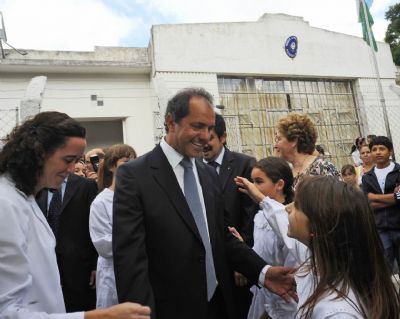 El gobernador Daniel Scioli aseguró hoy que quiere “bajar bruscamente la deserción escolar”, especialmente en la escuela secundaria, al dar inicio al ciclo lectivo 2010 para las escuelas secundarias del ámbito rural en el distrito de Brandsen. “El Estado dice presente cuando ustedes dicen presente en las aulas todos los días”, señaló el gobernador a los alumnos y recalcó que su gestión busca “el menor ausentimismo posible” porque “la educación, el deporte y la cultura ayudan a formar alrededor de los principios que acompañan a lo largo de toda su vida”. Asimismo, Scioli elogió la “planificación” para cumplir con el mínimo de 180 días de clases, con “mejoras en la infraestructura escolar” y con la entrega de “100 mil computadoras para la alfabetización informática y para la inclusión digital”. Durante la actividad que se llevó a cabo en la Escuela Secundaria Nº 2 de la localidad de Oliden, el gobierno provincial entregó materiales y libros para la institución y anunció la conformación de la Escuela Secundaria Nº 5 de Brandsen. Además, se adjudicó la obra para la ampliación de la sede de la Escuela Inicial 907, se confirmó el llamado a licitación para la construcción del nuevo edificio del Jardín 904, donde concurren 246 alumnos en el barrio Las Mandarinas, y la provisión de agua potable para Oliden, con una red que incluirá escuelas rurales, tambos, viviendas y chacras de la zona. Estuvieron presentes el director General de Cultura y Educación, Mario Oporto; el ministro de Economía, Alejandro Arlía; el titular del SPAR, Juan María Viñales y el intendente local, Rubén Nelson Piazza, y la directora del establecimiento, Sandra Pennacchioni