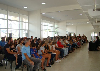Alumnos, padres y autoridades de la Universidad Nacional del Noroeste de la Provincia de Buenos Aires (UNNOBA) participaron de la reunión informativa de la Escuela Secundaria Presidente Domingo F. Sarmiento, que depende de la Universidad. Entre los presentes, se encontraban el rector de la mencionada Universidad, Guillermo Tamarit; la Prosecretaria Académica de la UNNOBA , Pilar Traverso, y la Coordinadora Académica de la Escuela Secundaria, Juliana D´Andrea.