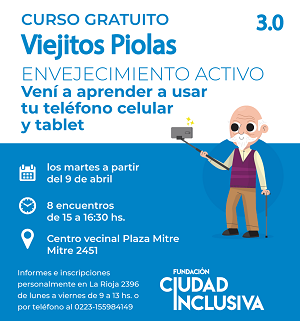 Por cuarto año consecutivo, se contará con un taller Viejitos Piola 3.0, sobre uso de herramientas básicas de computación, smartphones y tablets, dirigido a adultos mayores que deseen familiarizarse con recursos digitales e internet. Por el otro, por tercera vez, se dictará un taller sobre el uso de cajeros automáticos y el HomeBanking, en ambos casos, durarán dos meses.