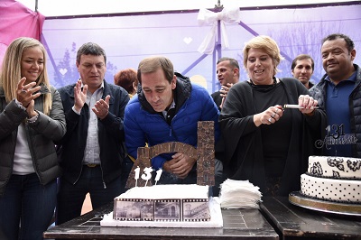 Luego, los presentes cantaron el feliz cumpleaños, y procedieron al tradicional corte de torta, que contó con la activa participación de vecinos de la localidad que se acercaron para disfrutar de un emotivo encuentro y se encargaron de distribuir las porciones entre el público presente.