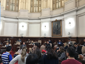 En la jornada se aprobó la ordenanza que prohíbe el estacionamiento vehicular en Diagonal 73 entre las plazas Azcuénaga y Moreno, sobre ambos sentidos circulatorios, los días hábiles en el horario comprendido entre las 7 y las 21 horas.
