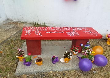 El “banco rojo” es colocado en lugares públicos como parte de una campaña de una red internacional denominada “Stati Generali delle Donne”. La iniciativa se realiza en distintos países y tiene como objetivo el concientizar sobre la prevención de la violencia de género y luchar en contra de los femicidios. Tuvo origen en Italia y en la actualidad, hay alrededor de doscientos bancos instalados. Cada uno contiene la siguiente frase: “En homenaje a las mujeres que fueron asesinadas en manos de quienes decían amarlas”.