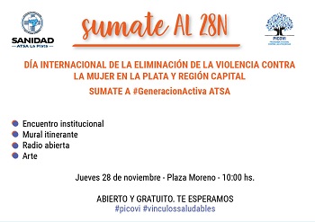 La actividad será el jueves 28 del corriente y comenzará alrededor de las 10hs y hasta las 13hs, la cual contará con la presencia de referentes y afiliados del sindicato de la sanidad y representantes de entidades de la Plata y la Región Capital, que trabajan la problemática de la violencia desde las distintas áreas.