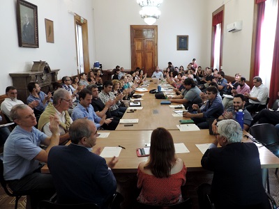 El encuentro tuvo lugar en el Rectorado y contó con la participación de diferentes organizaciones sindicales y movimientos sociales, organismos públicos y educativos, concejales de la región y referentes de facultades y colegios de la casa de estudios platense.