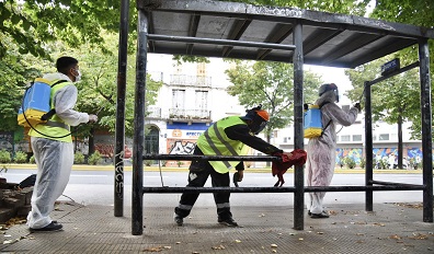 Sobre las tareas, el secretario de Espacios Públicos de la Comuna, José Etchart, detalló: “Delineamos un cronograma de tareas, de manera tal de abarcar el casco urbano y todas las localidades y mantener una frecuencia sostenida durante todo el período de cuarentena”, al tiempo que adelantó: “Comenzamos por las zonas peatonales, cajeros y las paradas del centro de la ciudad, teniendo en cuenta que son los más utilizados”.