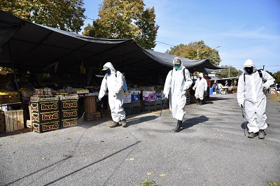 “Además de trabajar en las ferias francas, estamos desinfectando de forma cotidiana las paradas de micros, estaciones, terminales, veredas de farmacias, entidades de pago, bancos y cajeros”, agregó Etchart.