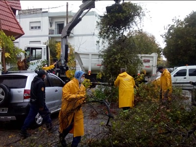 Finalmente, se señaló que los agentes municipales se encuentran trabajando en conjunto con las cuadrillas de la empresa de energía eléctrica EDELAP, quien trabaja para reestablecer el servicio en diversos puntos del Partido que sufrieron interrupciones producto de la caída de cables y postes de luz.