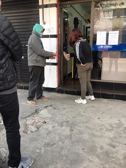La iniciativa se lleva adelante a través de trabajadores del área de Juventud, quienes ofrecen alcohol en gel al ingreso y egreso de la entidad, verifican si se cumple el distanciamiento social obligatorio al momento de realizar la fila, y también prestan información a aquellos beneficiarios que están por efectuar el trámite, verificando si es el día y lugar correcto para llevar adelante el cobro.