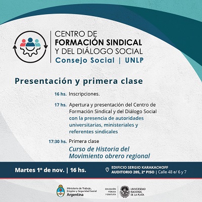 Se presenta en la UNLP el Centro de Formación Sindical y del Diálogo Social