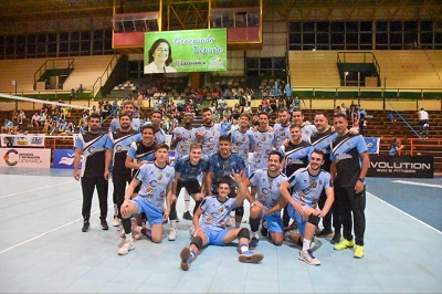 Cuerpo técnico y jugadores de Ateneo Mariano Moreno Vóley, de la Provincia de Catamarc...