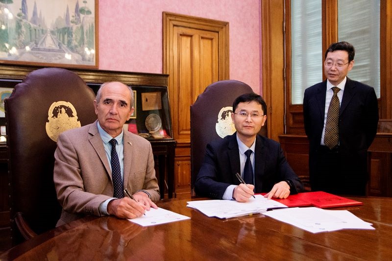 El presidente de la Universidad Nacional de La Plata, Martín López Armengol a una comitiva de la provincia de Hebei, ubicada en el norte de China, encabezada por el Vicegobernador del Gobierno Popular de la Provincia Hebei, Dong Zhaowei.
